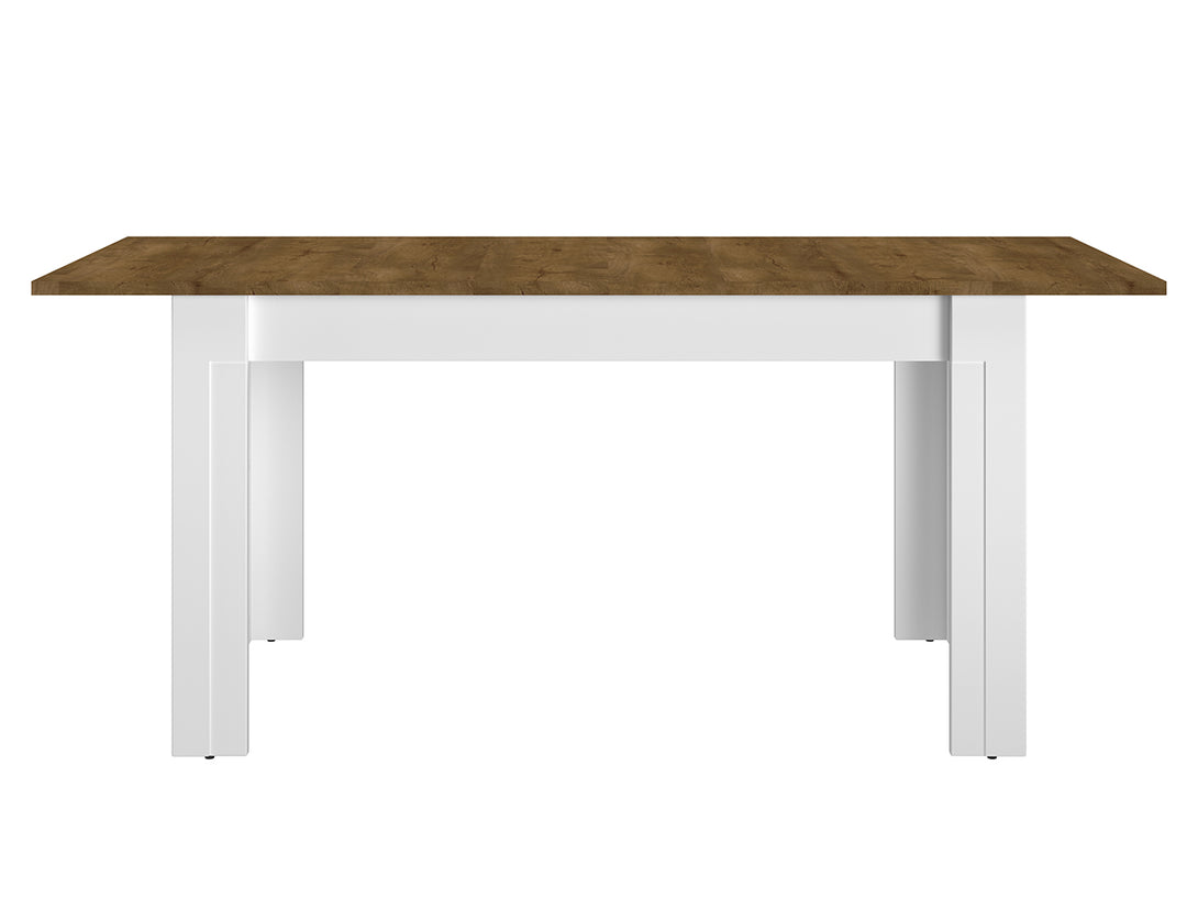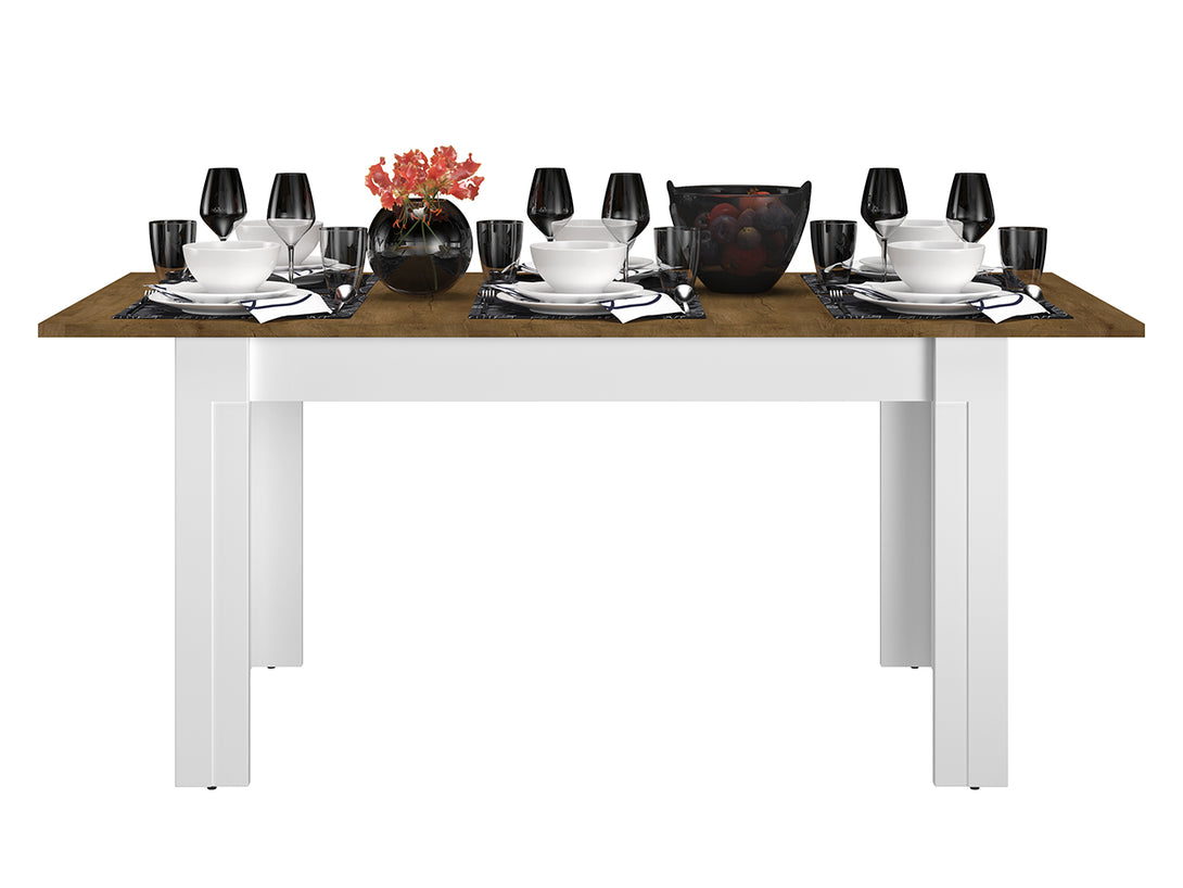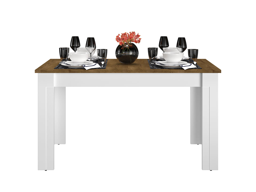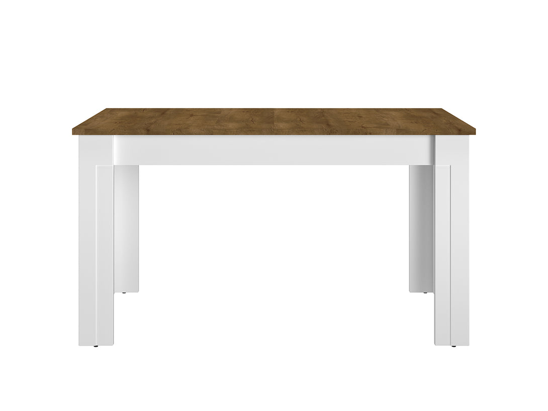 Der LILLE 15 Esstisch überzeugt durch sein modernes Design mit einer eleganten Kombination aus Lefkas-Eiche-Dekor und einer weißen MDF-Front. Der Tisch bietet ausreichend Platz für gemütliche Mahlzeiten und kann bei Bedarf bequem von 140 cm auf 180 cm ausgezogen werden. Dank der hochwertigen Materialien und der präzisen Verarbeitung ist dieser Tisch sowohl optisch ansprechend als auch besonders langlebig. Die robuste Laminatoberfläche und die stabilen Tischbeine garantieren langjährige Freude im täglichen Gebrauch.