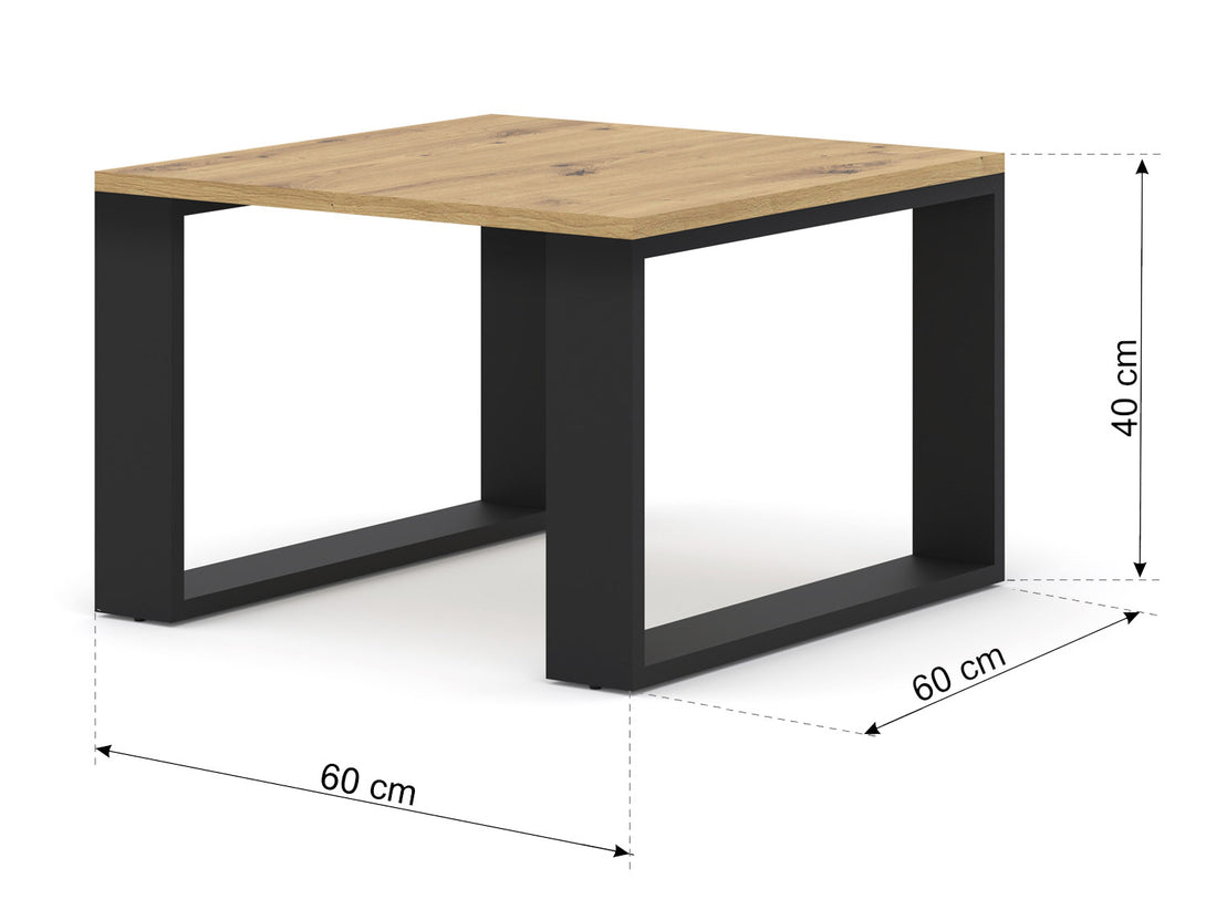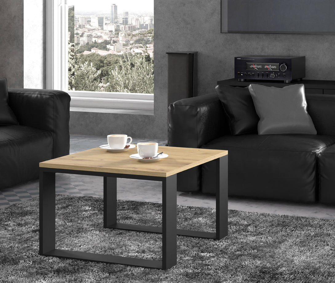Der LUCA Couchtisch vereint modernes Loft-Design mit praktischer Funktionalität. Die kompakte quadratische Form eignet sich perfekt für kleinere Wohnzimmer oder als zusätzlicher Ablagetisch. Die markanten schwarzen Metallfüße bilden einen stilvollen Kontrast zur warmen Artisan Eiche und sorgen für hohe Stabilität.