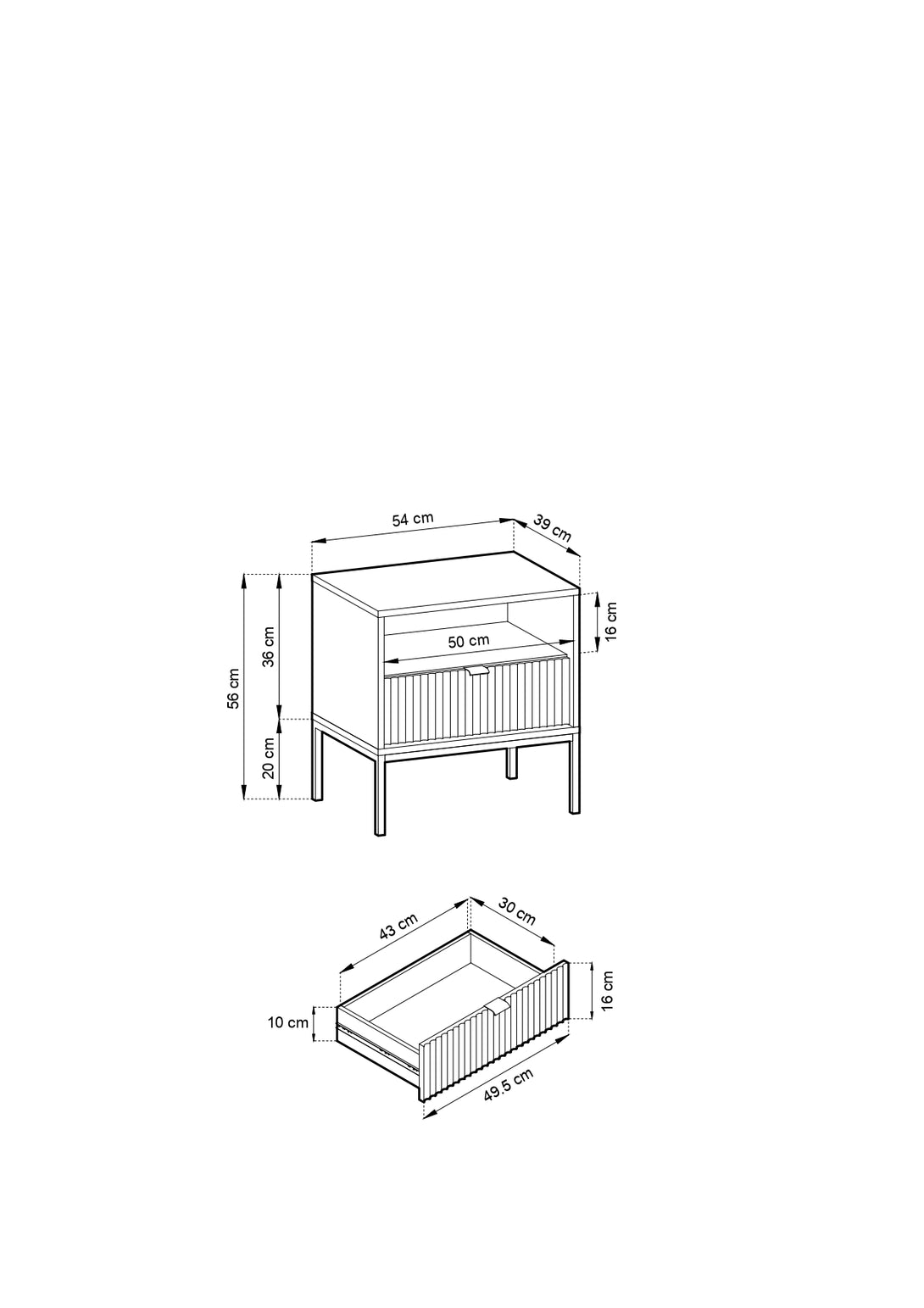 Der Nachttisch S54 in Kaschmir aus der NOVA-Kollektion verbindet ruhige Farbgebung mit einem modernen, strukturierten Design. Die Front mit Rillenoptik verleiht der Schublade eine hochwertige und zeitgemäße Ausstrahlung, während sie gleichzeitig geschützten Stauraum für persönliche Gegenstände bietet. Das obere offene Fach ist ideal geeignet für Bücher, Accessoires oder Dinge, die griffbereit bleiben sollen.