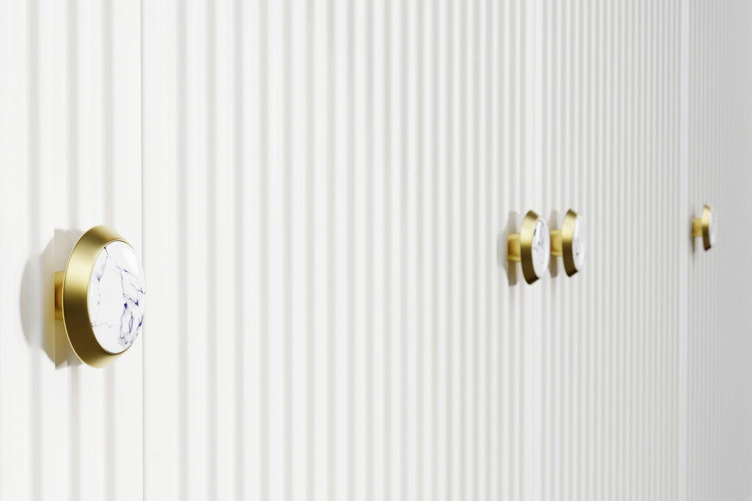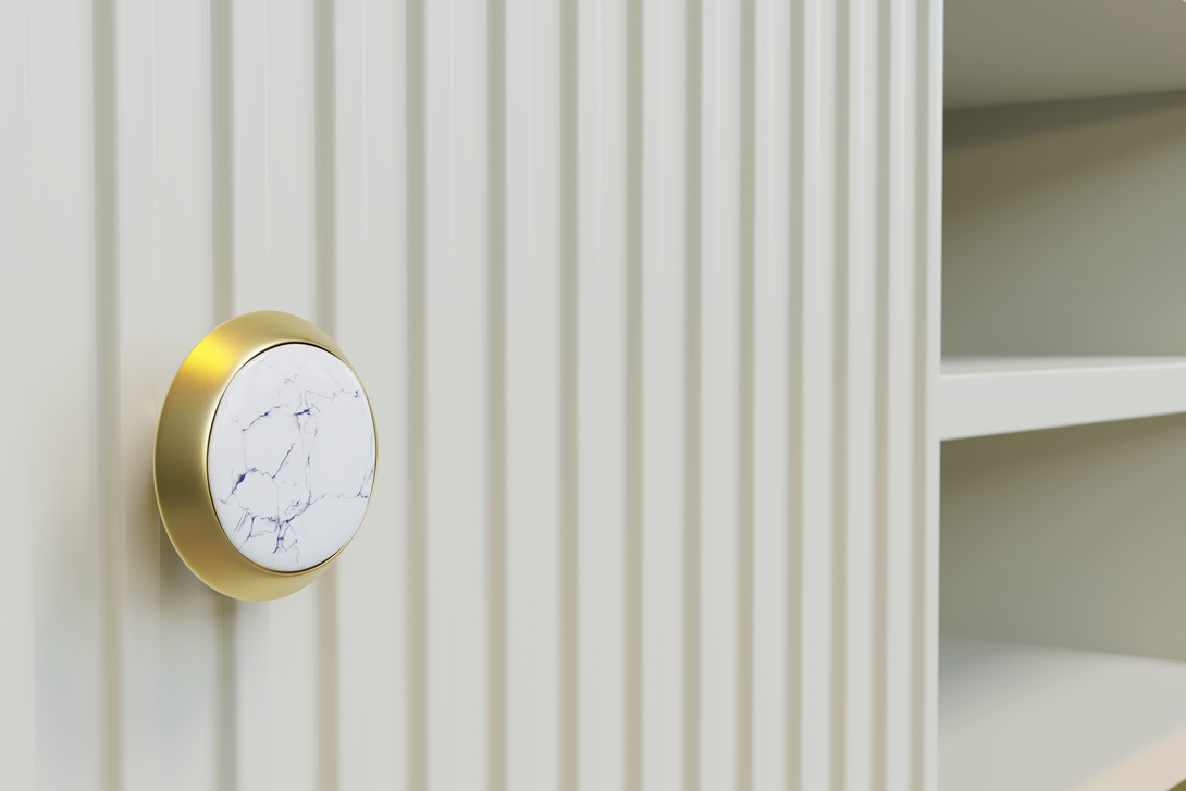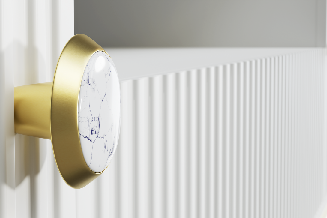 • Goldene Metallfüße und Griffe