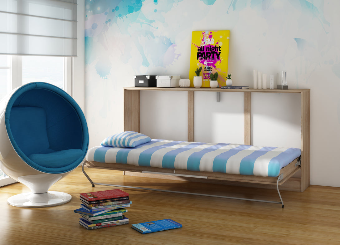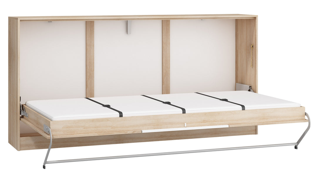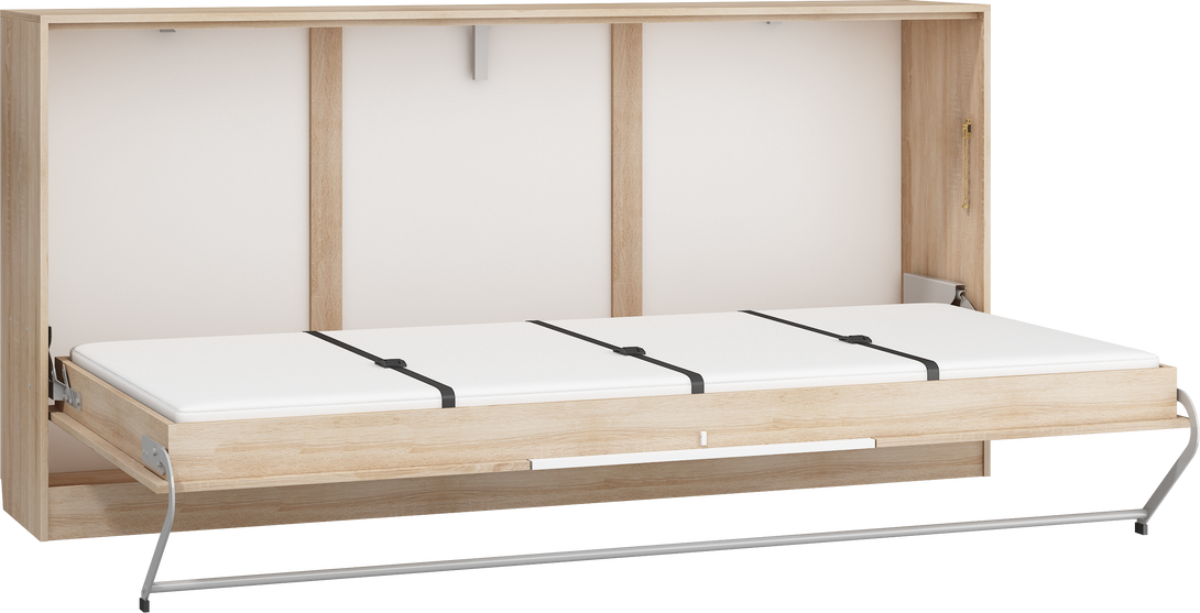 Das ROGER Wandklappbett bietet eine intelligente Lösung für Räume, in denen Funktionalität und Design gleichermaßen gefragt sind. Dank der horizontalen Klappmechanik lässt sich das Bett tagsüber platzsparend verstauen und verwandelt sich in ein stilvolles Möbelstück, das sich harmonisch in moderne Einrichtungen einfügt.