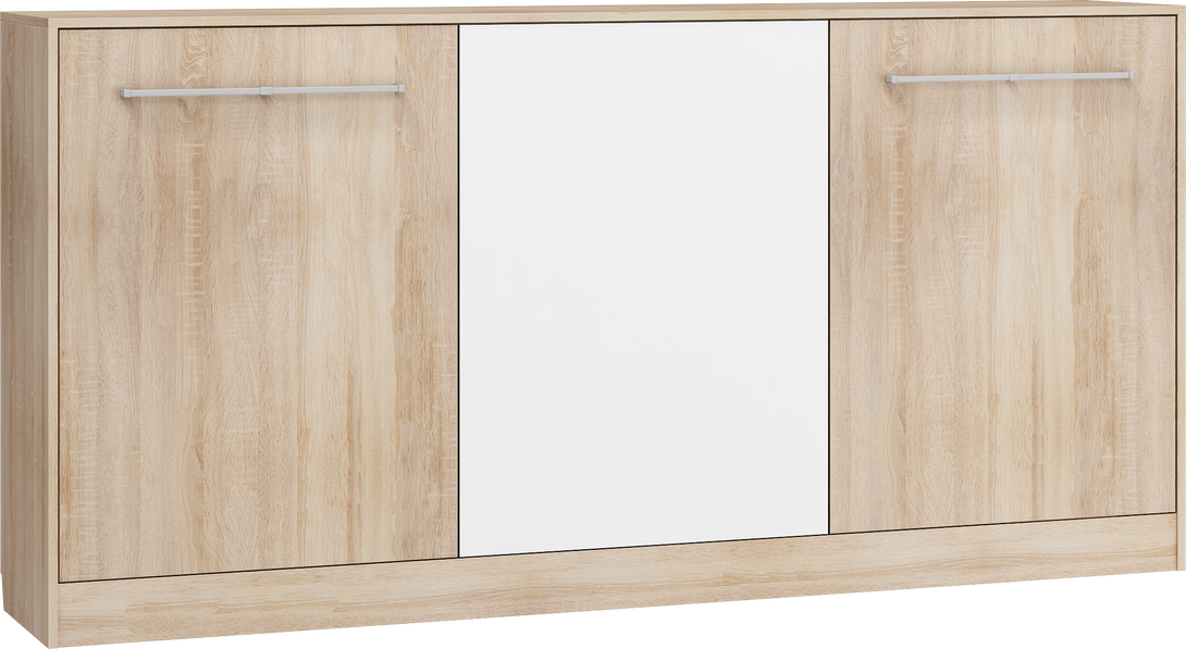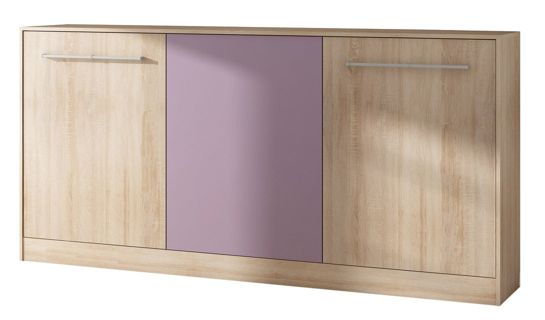 Die Kombination aus natürlicher Sonoma-Eiche und einer blauen Front verleiht dem Möbelstück eine moderne, frische Optik. Im Lieferumfang enthalten sind ein stabiler Metallrahmen und ein Lattenrost. Die Matratze ist separat zu erwerben. Selbstmontage erforderlich.