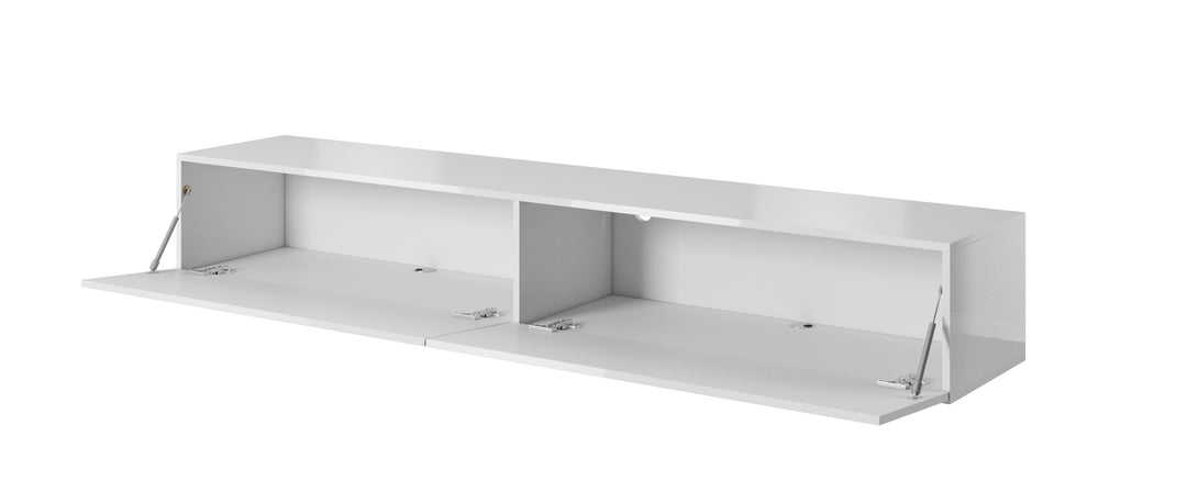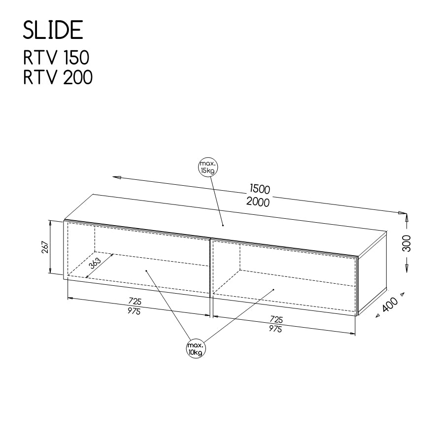 Das moderne TV-Lowboard SLIDE 200 überzeugt durch sein minimalistisches Design und eine elegante Hochglanzoptik, die jedem Wohnzimmer einen stilvollen Charakter verleiht. Besonders hervorzuheben ist die hochwertige Verarbeitung mit hochglänzenden MDF-Oberflächen an Front, Seiten und Oberseite, ergänzt durch eine matte Bodenplatte – ideal für moderne Wohnkonzepte.