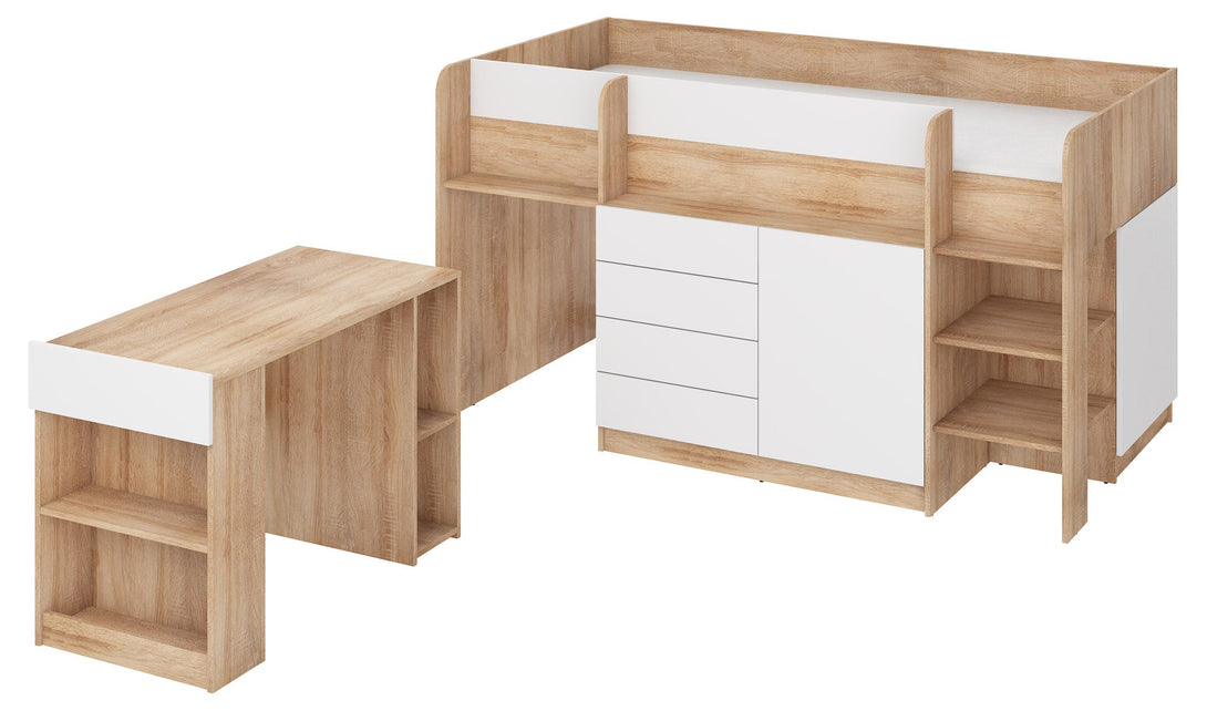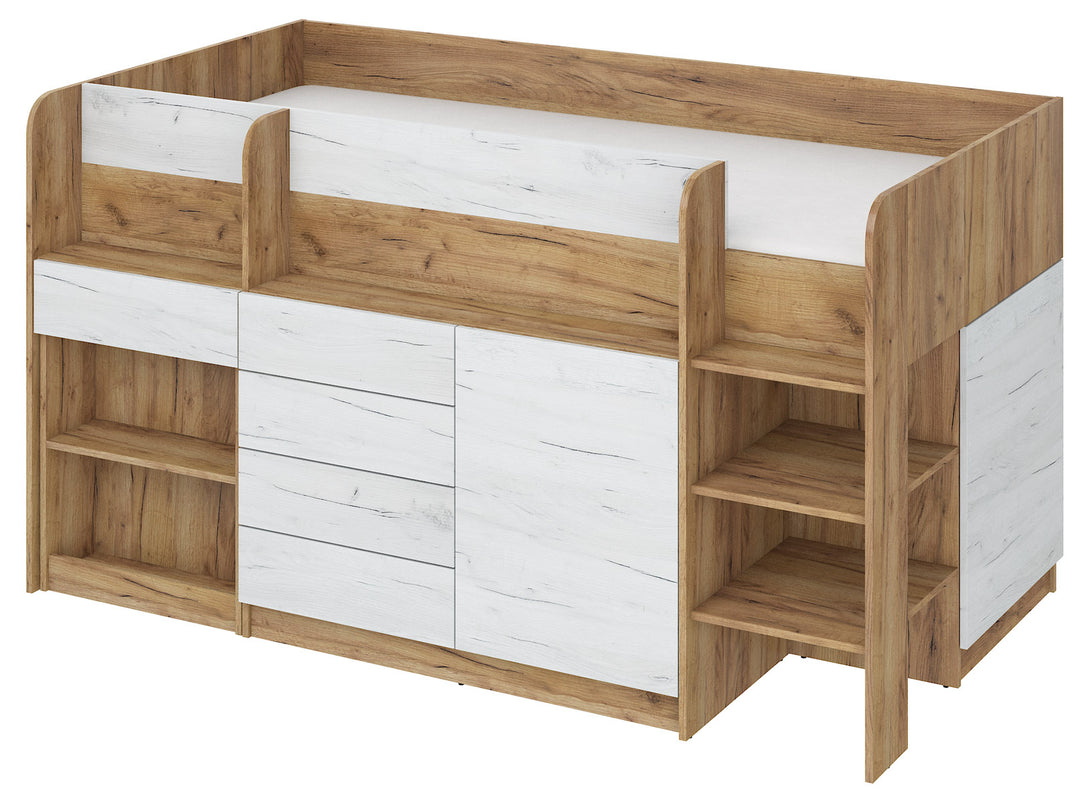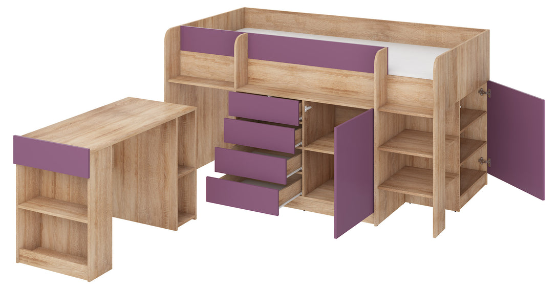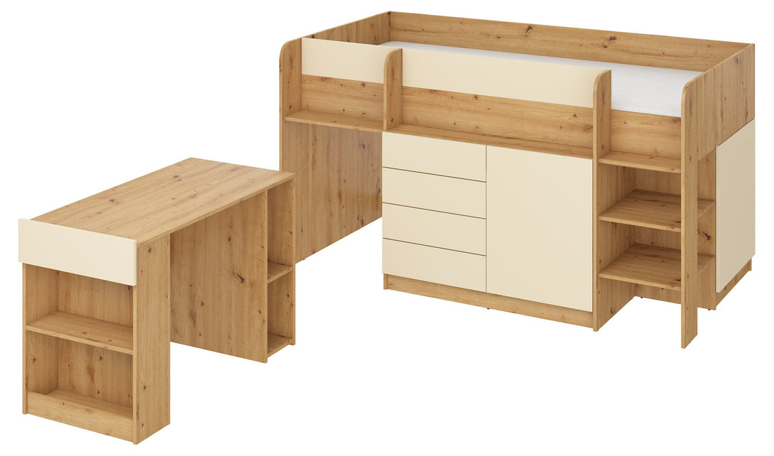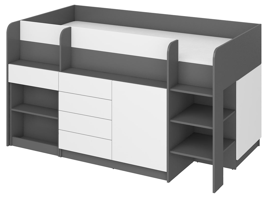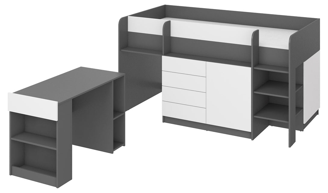 Hergestellt aus hochwertigen Materialien, überzeugt das Möbelstück durch seine stabile Konstruktion und moderne Form. Die ruhigen Schließmechanismen und die durchdachte Raumaufteilung schaffen eine angenehme Umgebung zum Lernen und Entspannen. Mit der originalen Formgebung bringt das Bett nicht nur Struktur, sondern auch Freude in den Alltag Ihres Kindes.
