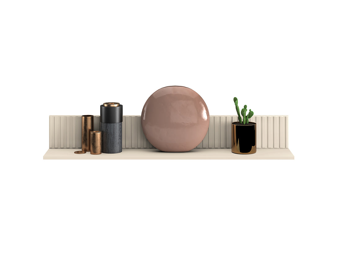 Das SOPHIE 09 Wandregal ist die perfekte Ergänzung für freie Wandflächen über Kommoden oder TV-Schränken. Mit einer Breite von 120 cm bietet es ausreichend Platz zur stilvollen Präsentation Ihrer Lieblingsdekorationen wie Bilderrahmen, Vasen oder Figuren. Die präzise Verarbeitung, der kaschmirfarbene Dekor und der gefräste MDF-Korpus verleihen dem Regal eine moderne und elegante Ausstrahlung. SOPHIE 09 überzeugt nicht nur durch seine Funktionalität, sondern auch durch sein ästhetisches Design, das jedem Raum einen Hauch von Raffinesse verleiht.