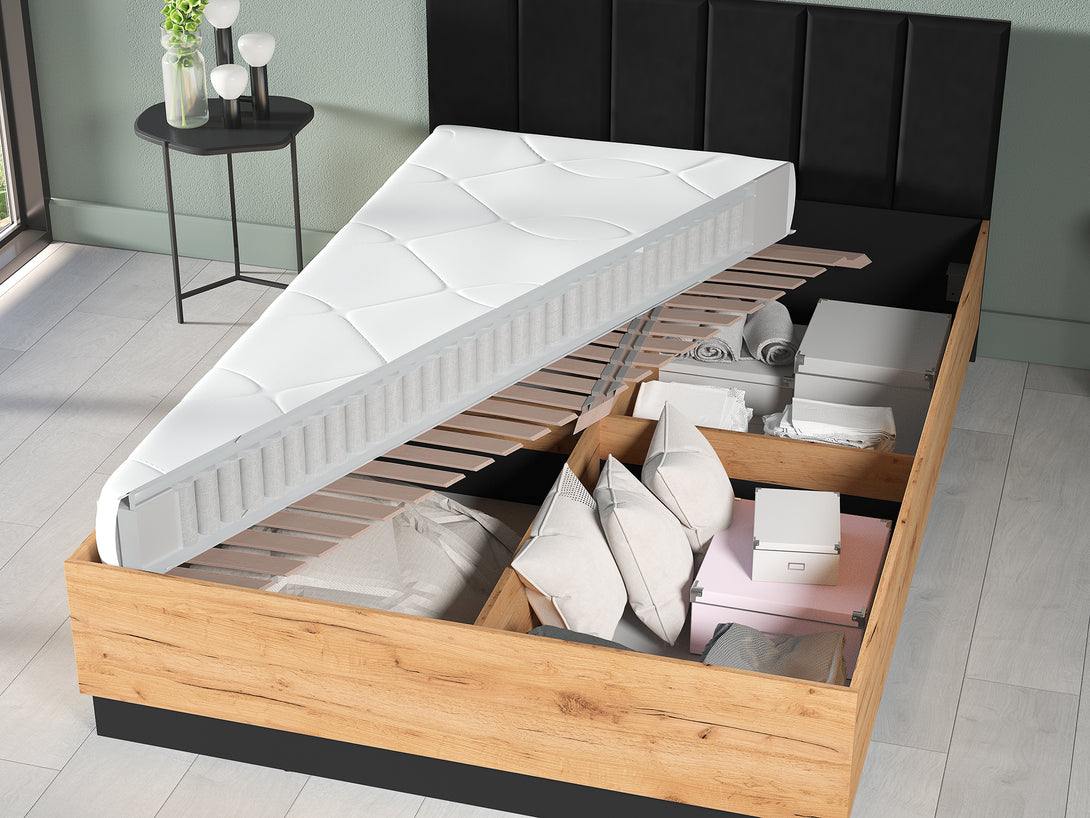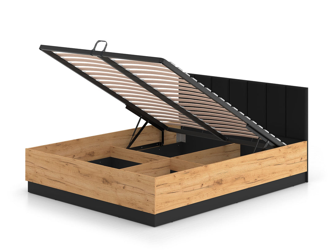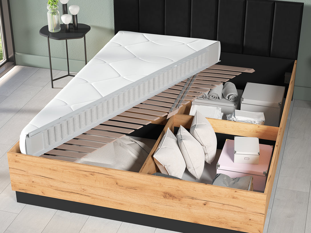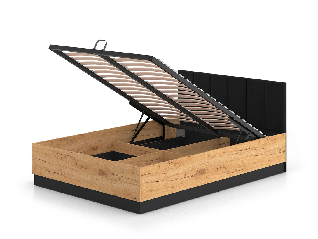 Die URSO Bettenserie umfasst vier stilvolle Modelle: URSO 1301 und URSO 1302 mit einer Breite von 145 cm sowie URSO 1401 und URSO 1402 mit einer Breite von 165 cm. Jedes Modell bietet ein elegantes Design in Gold Craft Oak mit schwarzem Samtkopfteil und integriertem Rahmen für optimalen Komfort. Die Betten unterscheiden sich in der Anzahl der Packstücke und im Gesamtgewicht, teilen jedoch dieselbe hochwertige Verarbeitung und moderne Optik. Dank der gepolsterten Rückenlehne in edlem Schwarz und der stabilen Konstruktion sind diese Betten die perfekte Kombination aus Ästhetik und Funktionalität. Die Modelle werden ohne Matratze geliefert, sodass Sie Ihre persönliche Schlaflösung frei wählen können.
