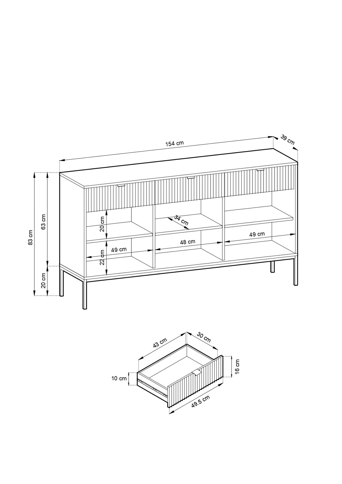 | 4 | Breite Kommode | 154 × 83 × 39 cm | 1 |