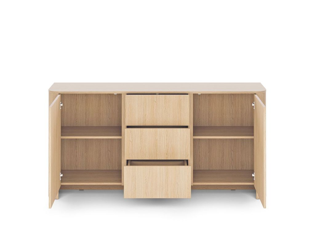 Produktbeschreibung: Dieses dreiteilige Wohnzimmer-Set der Serie BARI verbindet modernes Design, warme Eiche-Vicenza-Optik und praktische Funktionalität zu einem harmonischen Gesamtbild. Das Regal bietet zahlreiche offene Fächer für Bücher, Dekoration und Alltagsgegenstände, während das TV-Lowboard reichlich Platz für Multimedia-Geräte und Zubehör schafft. Die große Kommode mit Türen und Schubladen sorgt für zusätzlichen Stauraum und strukturiert den Raum perfekt. Dank der robusten Konstruktion und der pflegeleichten Oberflächen ist das Set ideal für langfristige Nutzung geeignet und verleiht jedem Wohnzimmer eine elegante, ruhige Atmosphäre.
